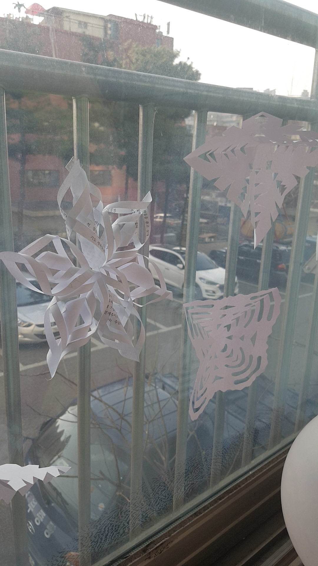 큰아이와 종이 오리기를 했어요.