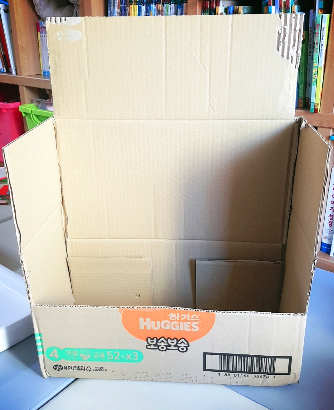 박스만 보면 이제 그냥 지나치지 못하는 병에 걸렸나봐요... ㅎㅎㅎ 덩치가 있는 박스는 아이들의 좋은 장난감이 되죠! 둘째아이는 자꾸 박스 속으로 들어가려고 하고 저는 구멍을 뚫으려고 하고 힘겨운 싸움이..