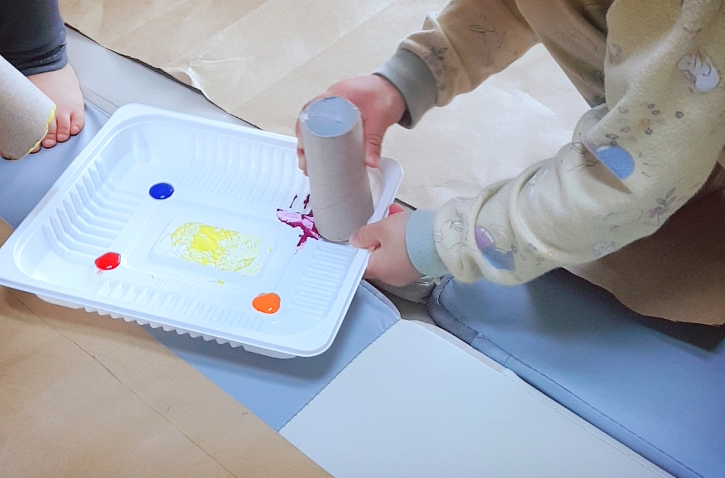 휴지심을 가지고 물감에 찍어