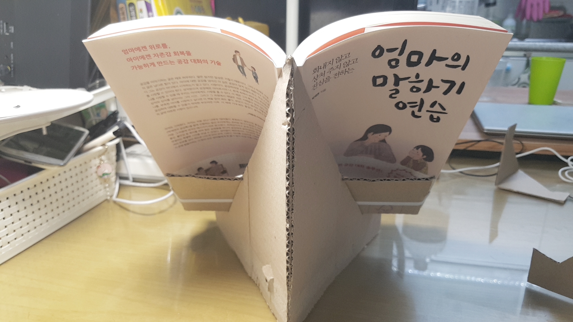 예쁜 종이로 잘 커버하면 나름 괜찮은 독서대가 될 듯해요. 저만 만족스러운가요?^^