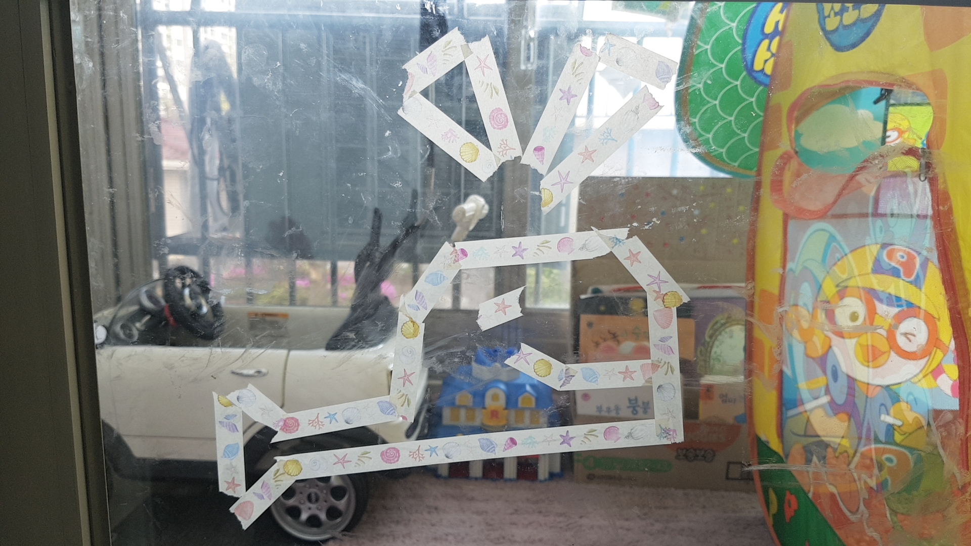 모자이크 기법으로는 색종이 찢어서 그림을 채우는 활동들에 많이 사용하는데요. 오늘은 베란다 유리창에 한번 해보려고요ㅎㅎ