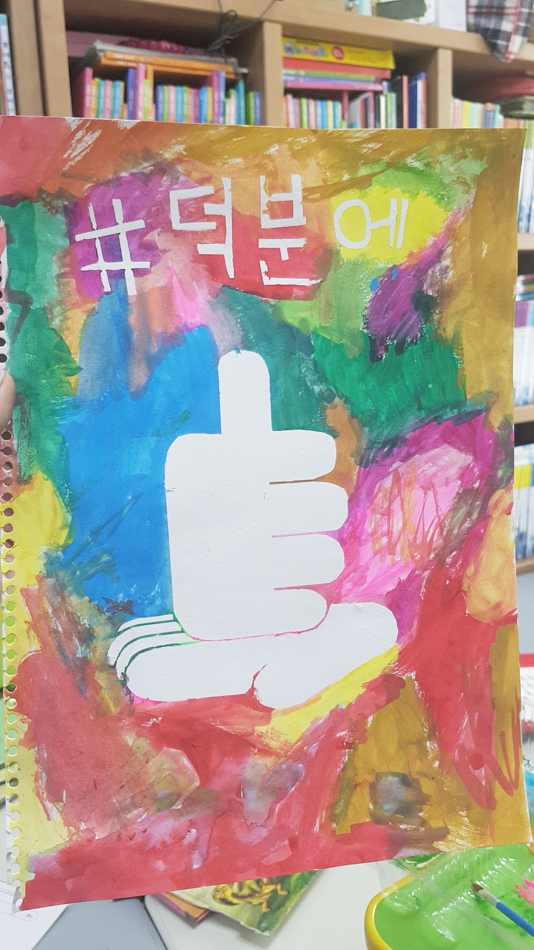 저도 오늘 아이들과 챌린지에 참여했습니다. 그런데 그냥 수어로만 하면 재미없잖아요.^^ 재미있는 미술놀이로 함께 했습니다.