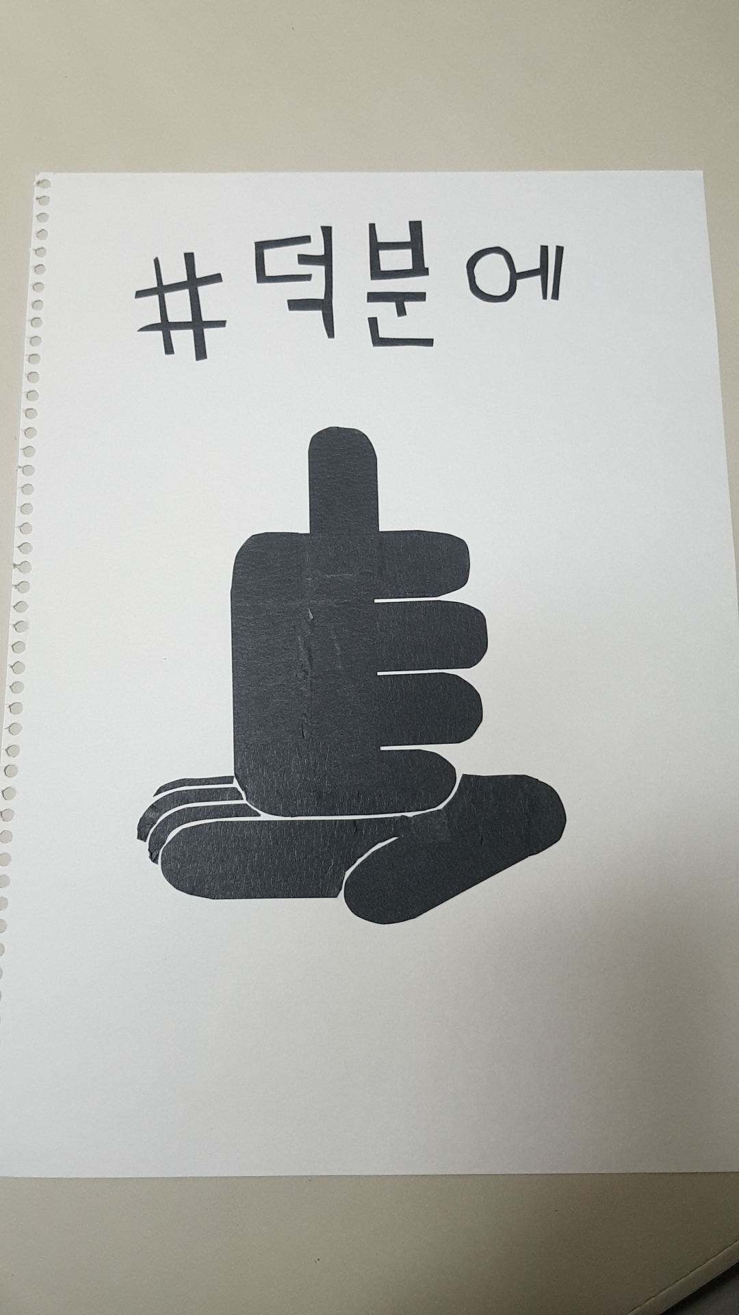 먼저 스케치북에 마스킹테이프 작업을 해야합니다. 수어 모양과 글씨를 마스킹테이프로 표현하는 게 제일 큰 작업입니다. 요건 아이들이 하기 어려워서 제가 혼자 작업을 했습니다.^^