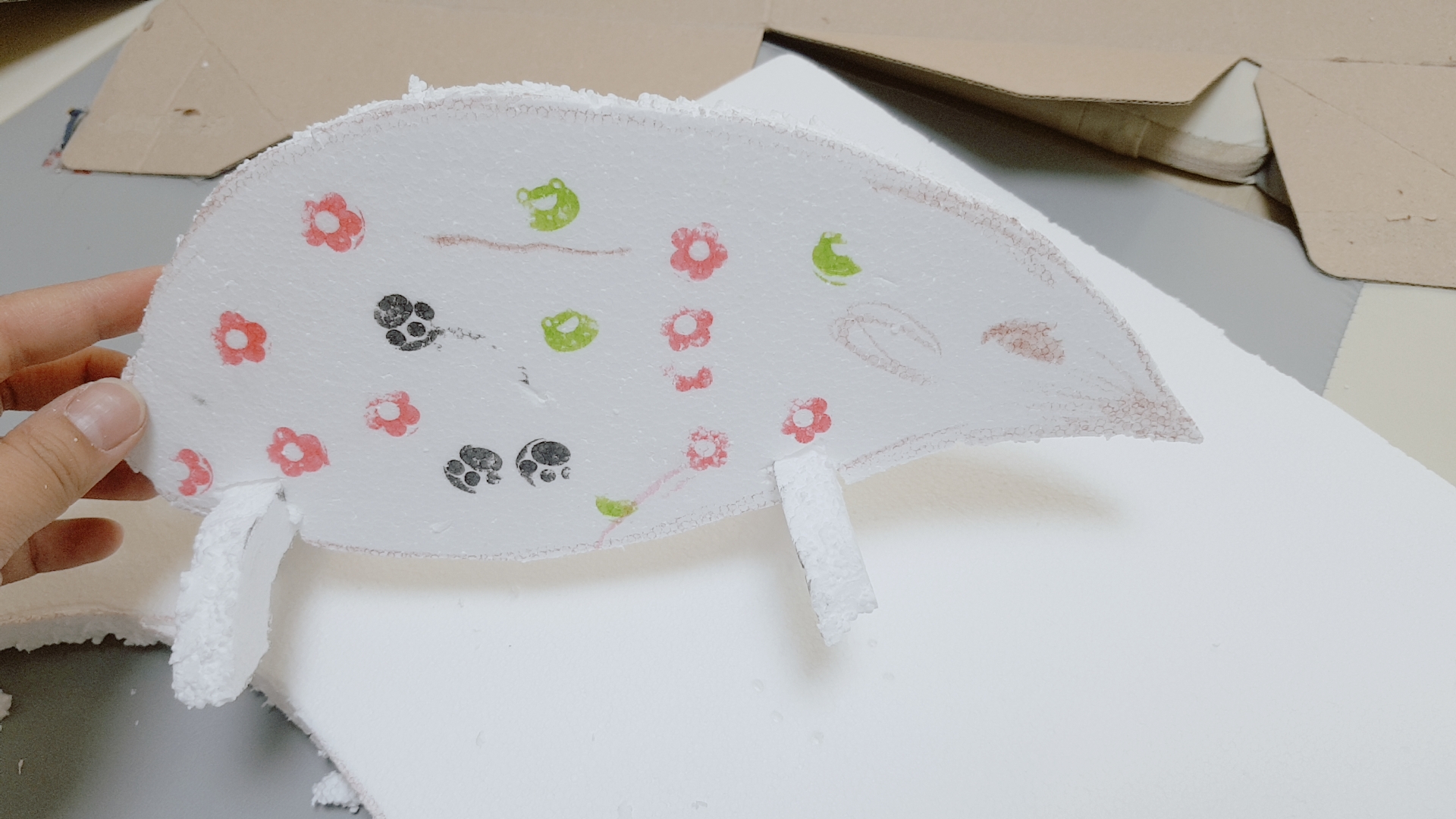 스티로폼에 밑그림 그리고