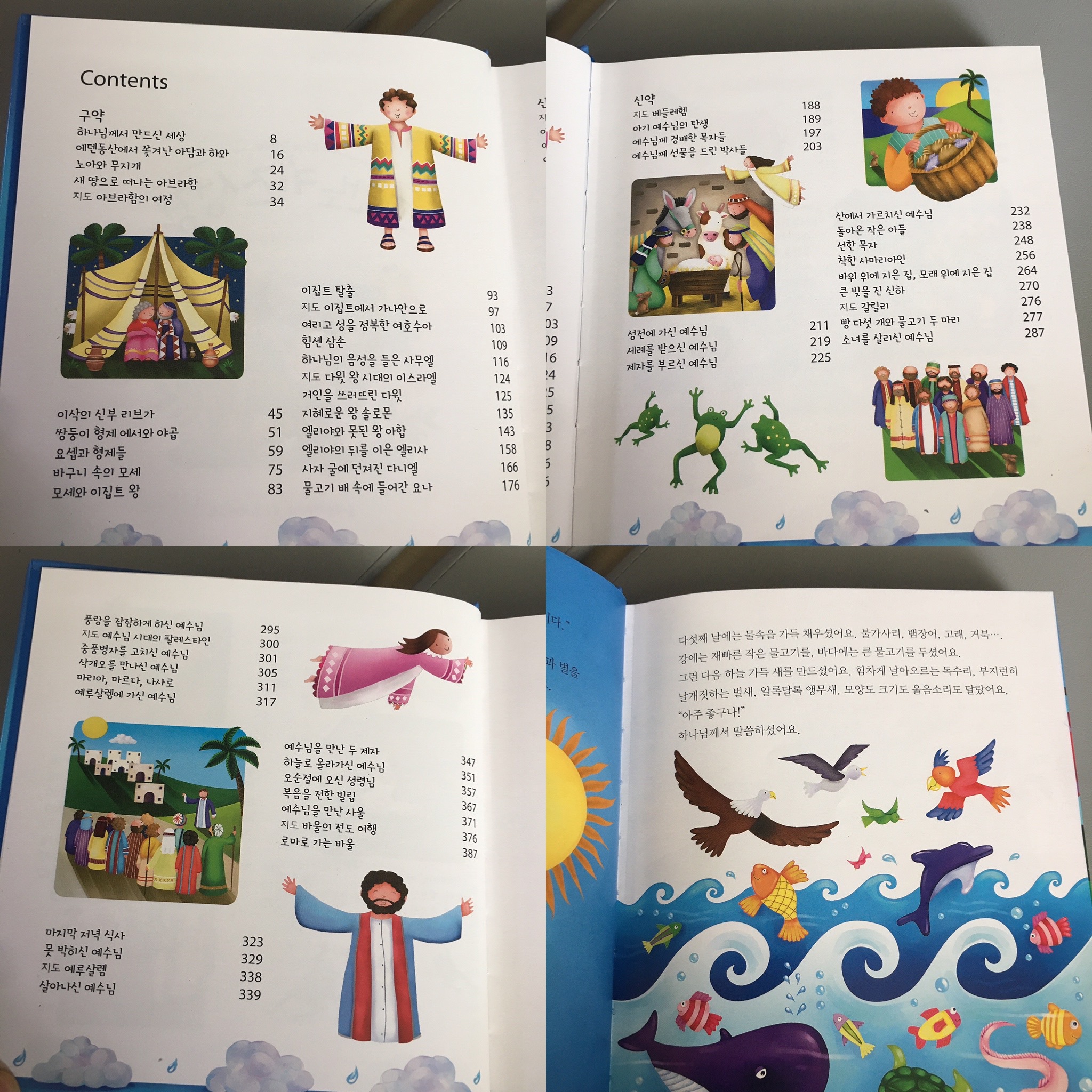 기독교 서점에 가면 다양한 유아 성경책이 많이 있어요. 뭘 선택하든 저는 좋다고 생각해요. 아이들에게 다양하게 접할 수 있는 기회를 주는 건 중요하니까요. 아이들 연령을 고려해서 글밥이 적당한 걸 찾아주면 될 거 같아요.