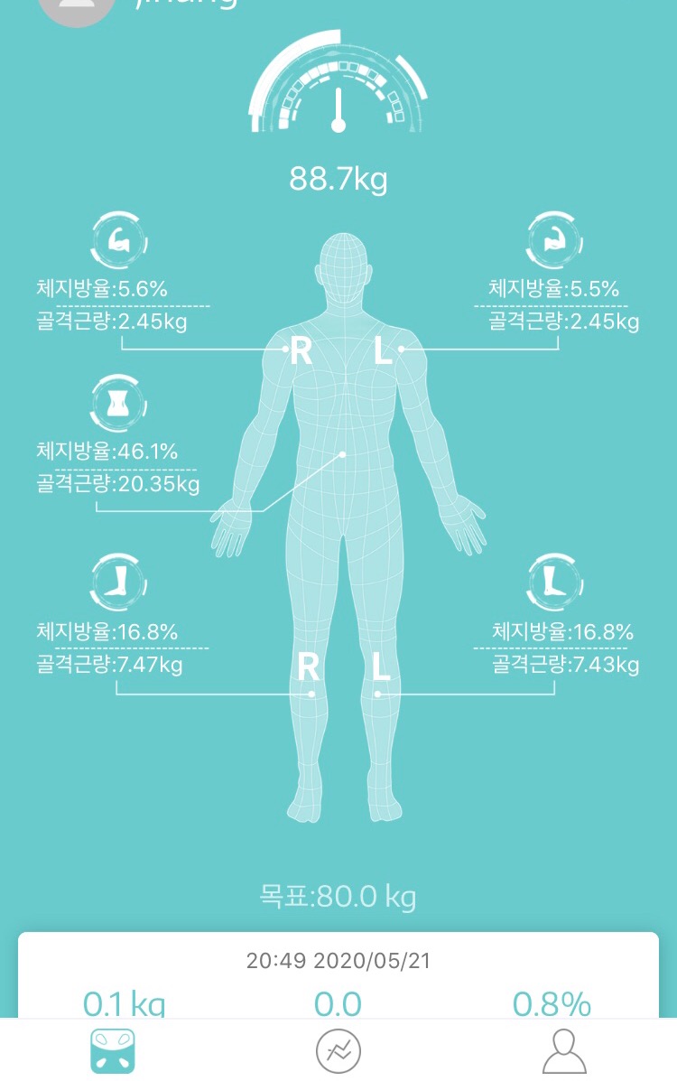 어플을 통해 몸 안에 있는 무게들을 다 확인할 수 있네요~